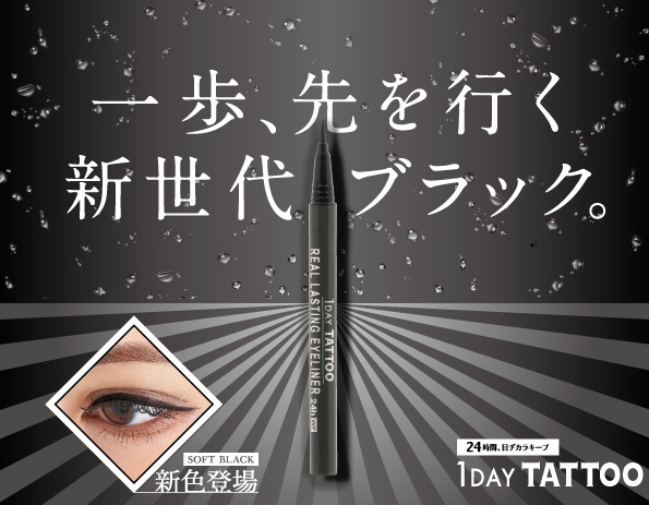 『1DAY TATTOO』でおなじみの、落ちないリキッドアイライナー「K-パレット リアルラスティングアイライナー24h WP」から、一歩先を行く新世代ブラック「ソフトブラック」が新色として登場です。抜け感のある発色80%のブラックで、目元に自然に溶け込みます。あらゆるシーンで使いやすい自然な艶と透け感のある新色「ソフトブラック」でトレンドEYEへ。