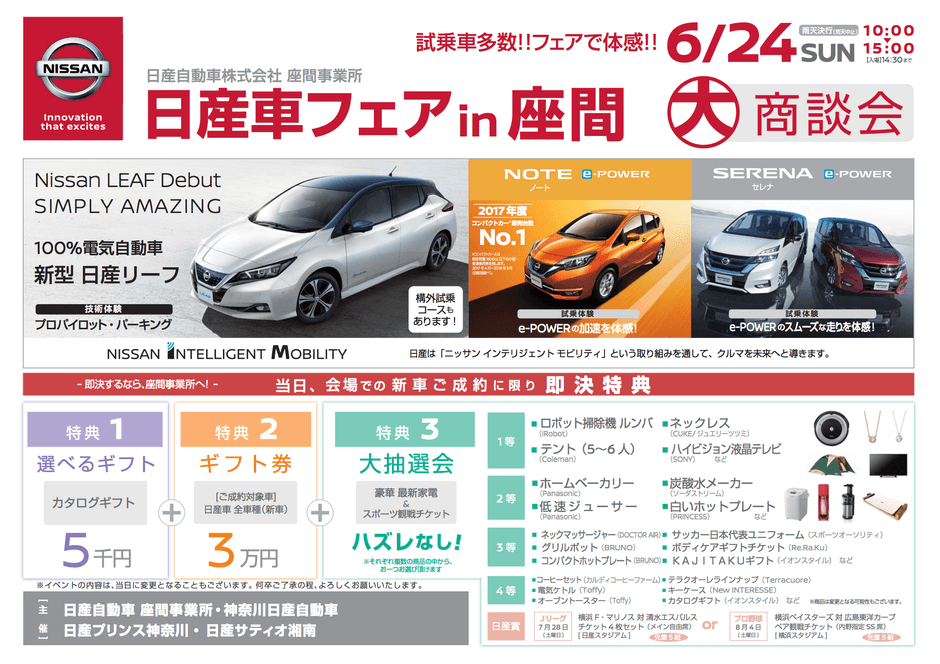【関東地域・イベント情報】 6月24日(日)、日産座間事業所にて大商談会「日産車フェア in 座間」を開催!
