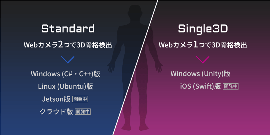株式会社ネクストシステム(本社:福岡県福岡市、代表取締役:藤田 義生)は、WEBカメラで人間の骨格を検出するシステム「VisionPose(ビジョンポーズ)」シリーズの1つとして、カメラ1つで人間の骨格を検出する「VisionPose Single3D(以下 Single3D)」を9月9日(月)より販売開始しました。同シリーズの別製品であるVisionPose(Standard)がカメラ2つを利用して3D骨格検出をするのに対し、Single3Dではカメラ1つで人間の骨格を3D骨格検出することができます。また、Windows Unity向けのSDKを追加し、ゲーム開発やVR・AR開発時などに利用しやすくなりました。