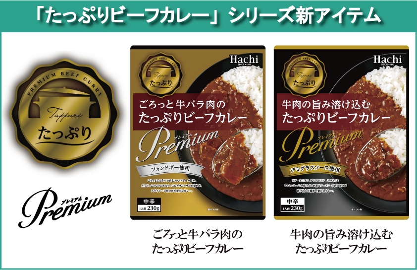 『たっぷりビーフカレー』シリーズは、通常のレトルトカレーの量ではちょっと物足りない方に向けたレトルトカレーです。量だけではなく具材やソースにさらにこだわり、より一層の満足感を与えられるような商品を提案すべく開発いたしました。また、プレミアムな商品を追加することでシリーズの強化を図ります。