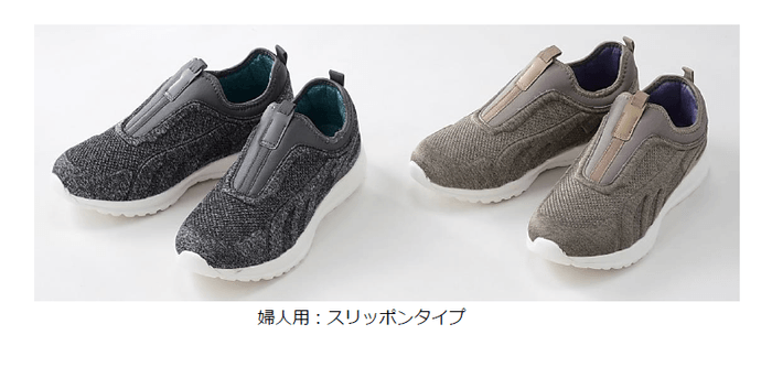 雨や雪など悪天候の日に活躍する防水スニーカー。新発売した「軽くて履きやすい防水スニーカー」は底面から6cmの高さがあり、8時間履いても水が入ってこないように設計したライフオリジナルのスニーカーです。防水仕様でありながら、片足約175g(23.5cm・婦人用)の軽さを実現しました。さまざまなシーンに合うよう、紐タイプとスリッポンタイプの2デザインをご用意いたしました。