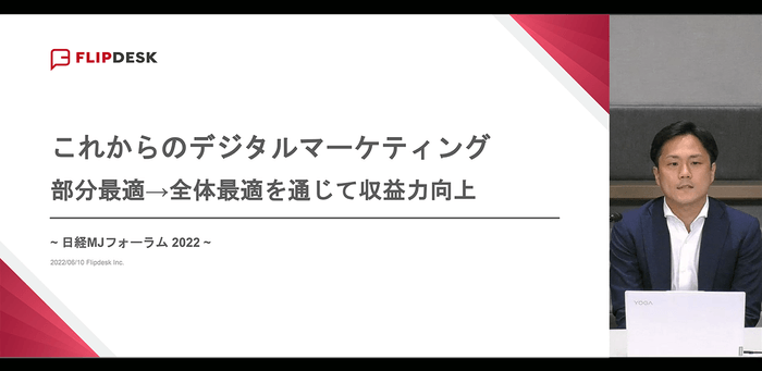 フリップデスク社の代表取締役社長 佐々木が、 日経MJフォーラムで 「デジタルマーケティング成功のカギは“全体最適”」と発表