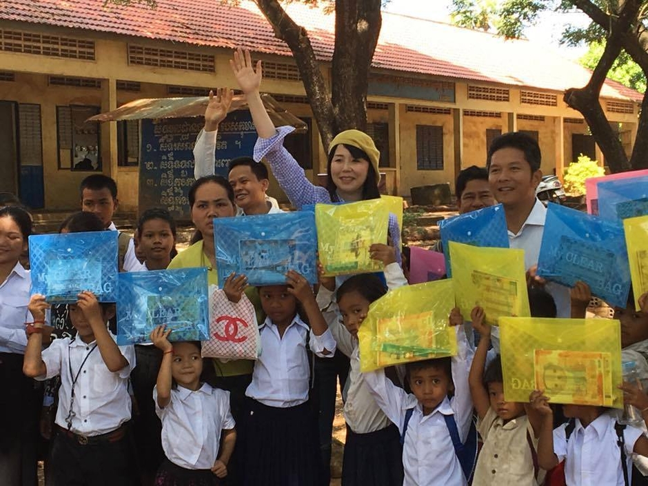 ▲文房具を650名寄付。代表の文が直接カンボジアで手渡し