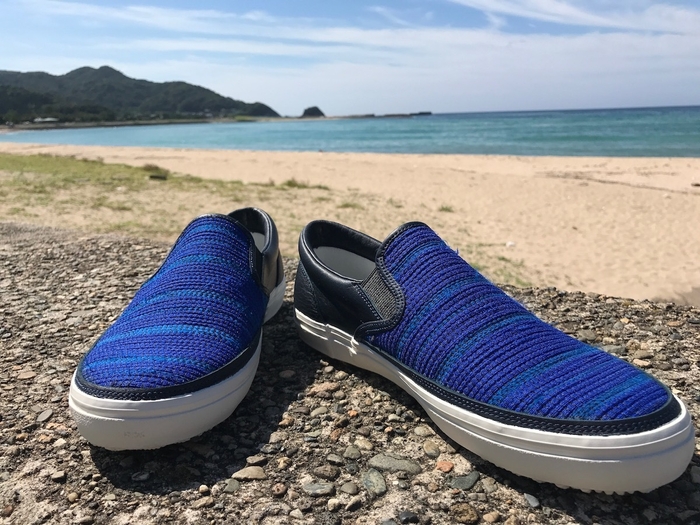 江戸時代中期からの技法「裂き織り」を使用したスニーカー