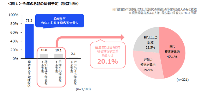 今年のお盆は、78.2%が「帰省する予定はない」と回答。
