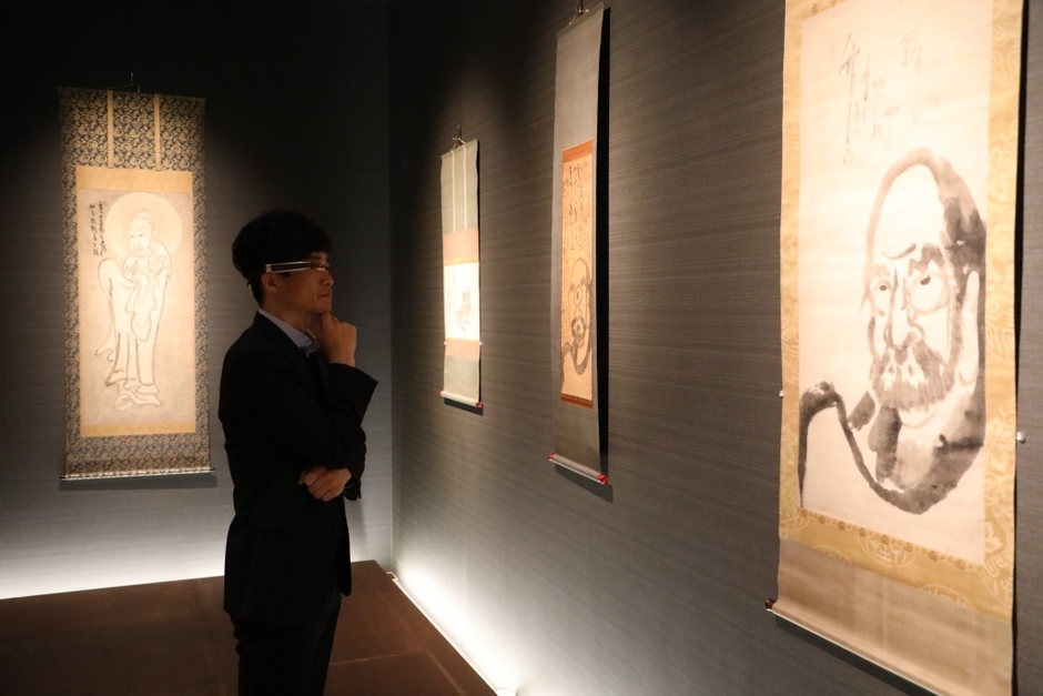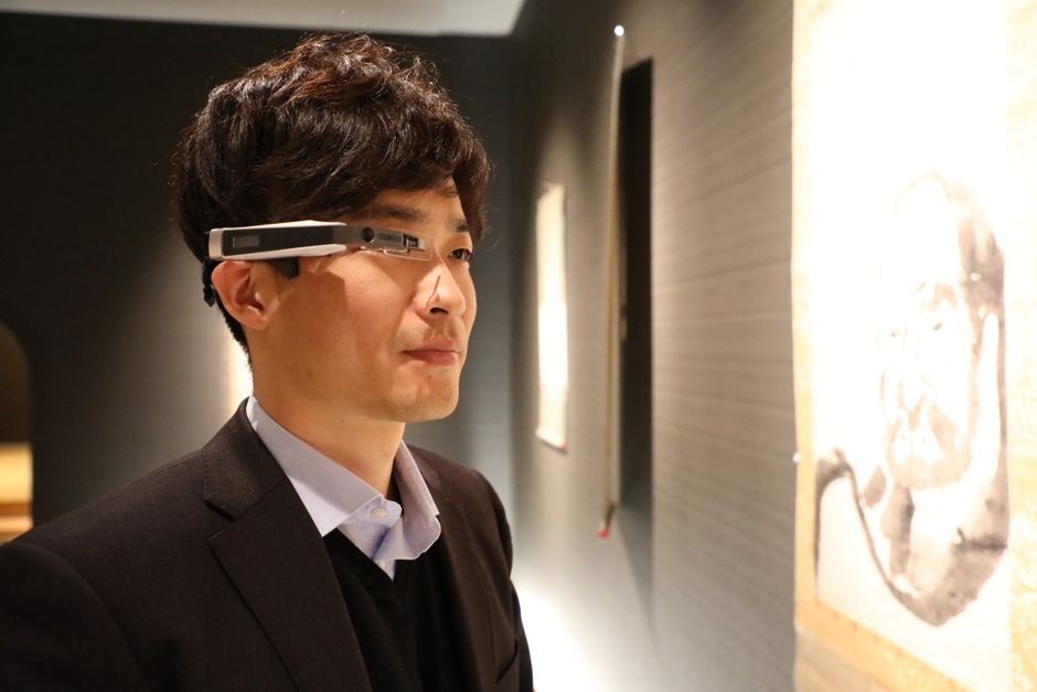 『Telepathy Walker(R)』のディスプレイに禅文化研究者の芳澤勝弘氏(※)による白隠禅画の解説が 浮かび上がり、まるで目の前で解説を見聞きしているかのように視界を動かすことなく作品を鑑賞し、白隠禅画への理解を深めることをサポートします。この取り組みを通じて白隠禅画への造詣を深め、 “未来技術”を活用して“古きよきもの”を知る、新しいミュージアム体験を提供します。