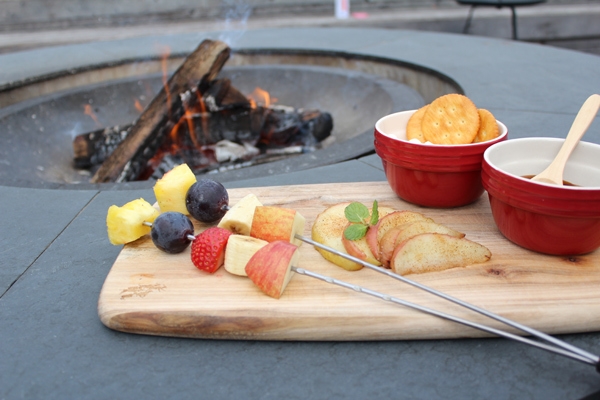 グランエレメントではメイン棟アストラルデッキにあるファイヤーピットにて毎晩日没から23時まで焚き火のゆらめく炎を眺めながらおくつろぎいただいております。そのファイヤーピットを利用し10月7日ご宿泊より今シーズン営業終了の11月30日ご宿泊まで、16:00からと翌朝9:00からそれぞれ30分間の2回キャンプデザート作り体験を開催します。オリジナルのスモアやチョコバナナの甘いデザートを食べながらグランエレメントならではのアウトドア体験ができ、暖かな光に包まれて優雅なひと時をお過ごしいただけます。