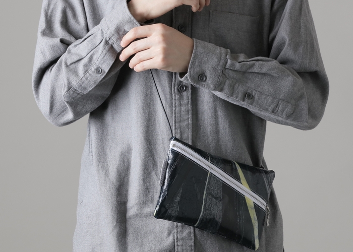「サコッシュバッグ カラーモデル」は、様々な素材や色が混在するカラー傘を、より細かな選別を行う事により実現した製品です。ビニール傘を粉砕などはせずに再利用する事により、汚れても水拭きが出来るメンテナンスのし易さはもちろん、雨の多くなるこれからの時期にも安心してお使いいただけるサコッシュバッグです。様々な柄を持つカラー傘を何層にも重ねてプレスをする事により、同じものは2つと無いオリジナリティの高い製品が完成しました。華やかなカラーによりユーザーの趣向に沿った提案が出来る製品として、6月9日よりオンラインストアで販売を開始し順次ラインナップの拡充を行います。
