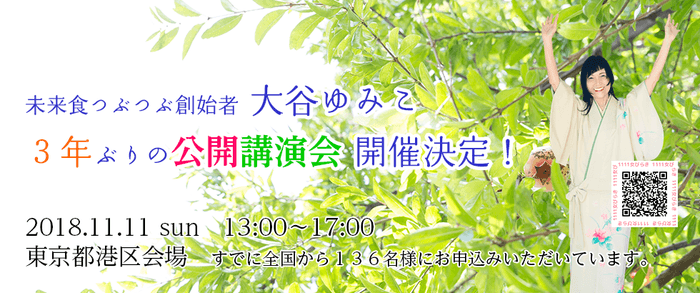 株式会社フウ未来生活研究所(所在地:東京都新宿区)は、当社代表の大谷 ゆみこが3年ぶりの公開講演会を、2018年11月11日(日)に東京都港区にて開催いたしますのでお知らせいたします。