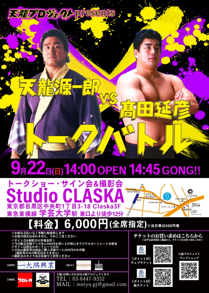 天龍プロジェクトpresents第11弾 天龍源一郎VS高田延彦 トークバトル開催のお知らせ