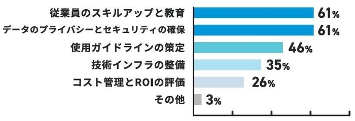 ・企業・事業主では、「従業員のスキルアップと教育」と「データのプライバシーとセキュリティの確保」がともに61%。
