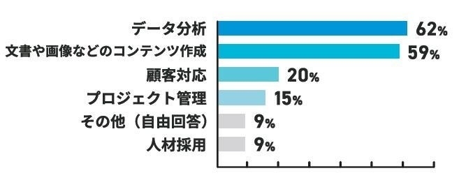 ・企業・事業主では、「データ分析」が62%、次いで「文書や画像などのコンテンツ作成」が59%