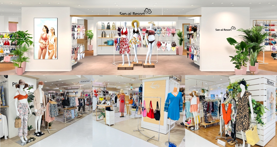 2022年5月20日(金)、西銀座デパート(所在地:中央区銀座4-1)地下1階フロアでは「San-ai Resort(サンアイ リゾート)」がリニューアルオープンし、日本最大級の広さを誇る水着売場が更に拡大します。売場面積は既存の1.5倍の約200坪、4店舗60ブランド以上、約12,000点の水着やリゾートウェアを取り揃えます。
