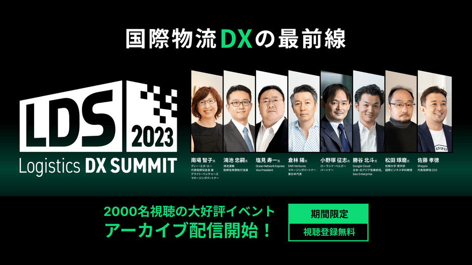 国際物流プラットフォーム「Shippio(シッピオ)」を提供する、株式会社Shippio(本社:東京都港区、代表取締役CEO:佐藤 孝徳、以下 Shippio)は、2023年3月2日(木)~3月3日(金)の2日間で開催した「Logistics DX SUMMIT 2023 ~国際物流DXの最前線~」の、セミナーのアーカイブ動画とセミナーレポートを、6月28日(水)に無料で公開いたしました。