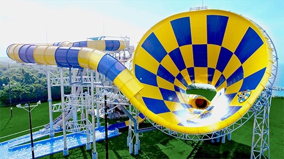 様々なスライド要素を組み合わせた世界初の、巨大なウォータースライダー。