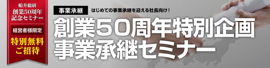 【船井総合研究所】<創業50周年 感謝企画> 経営者限定で参加費無料『事業承継セミナー』を全国で開催