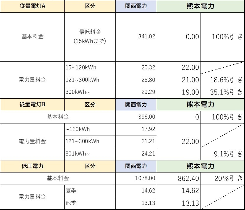 契約種別 :従量電灯A、従量電灯B、低圧電力