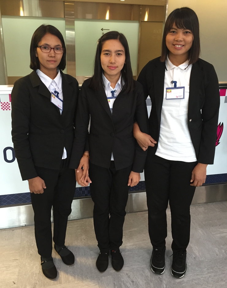 ミャンマー人技能実習生送り出し機関ミャンマー・ユニティが送り出した、介護技能実習生第一陣は5月8日朝に成田空港に到着し、その後1ヶ月間の配属前の講習を行うため千葉市内にある講習施設へと向かいました。そこでは同じく技能実習生として日本に入国しているインドネシア・フィリピン・ベトナム・中国の技能実習生達と共同生活を送りながら、日本語・生活のルール・技能実習生の法的保護に必要な情報などについて学びます。この施設で学んでいる間の会話はすべて日本語であり、授業も日本語です。