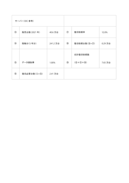 ※4 (15)については、サーバーの原価償却期間を5年として稼働期間を定義、その間に各HDD個体の障害に遭遇する確率が全体で30%ほどに達するとして、冗長化継続対応を怠ったためにデータを消失するユーザーが1%と想定。