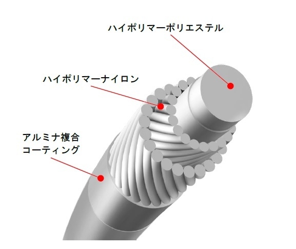 芯糸のハイポリマーポリエステルと金属よりも硬いアルミナ複合コーティングで打ち応えアップ!力強い打球音も実現。