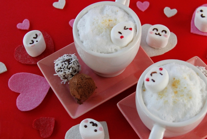 “ジンジャーショコラ”は、温かいチョコレートと牛乳の甘さの中に生姜を入れたホットチョコのドリンク。生姜のピリリとした風味がアクセントになり、体を芯からポカポカと温めます。かわいらしくデコレーションされたマシュマロがトッピングされ、味だけでなく見た目もお楽しみいただけます。さらに、バレンタイン・ホワイトデーシーズンには欠かせないトリュフがロースイーツになり、ドリンクとセットになっています。ロースイーツは、乳製品や白砂糖と一切使用せず、また加熱もせずに調理するスイーツで、食材の食物酵素を損なうことなく体に取り入れることができるため、最近注目を集めています。今回の“ロートリュフ”は、低温で乾燥させたローカカオパウダーをまぶしたものとココナッツロングをまぶした2種類をしっとりとした食感でデーツ(ナツメヤシの果実)の自然な甘みを感じるトリュフに仕上げました。