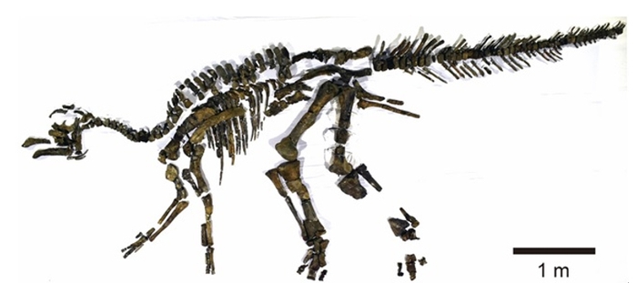 この恐竜は、2013年7月に北海道むかわ町穂別に分布する上部白亜系函淵(はこぶち)層の海成層(約7,200万年前)から見つかったもので、その後の発掘調査の結果、全身の8割を超える骨が保存されていることが分かり、大型恐竜としては国内で最も完全に近い全身骨格となりました。