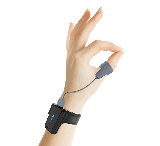 通常、指先で測定している血液中の酸素飽和度を指の根元で測定できます。センサーが外れにくく、圧迫感がなく、指先が自由になるだけでなく、小型で軽量な装置なため、長時間測定する運動、日常生活、睡眠の場面での測定に適しています。睡眠時無呼吸症候群、在宅酸素療法、医療現場などで使用されています。スマートフォンアプリから持続的に酸素飽和度値を表示でき、継続的なモニタリングが可能です。