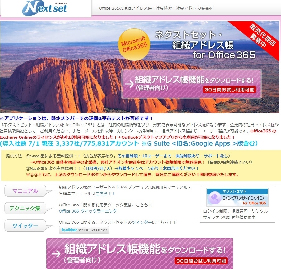 ネクストセット・組織アドレス帳for Office 365に関するURL