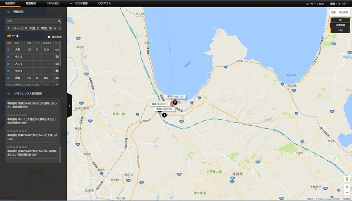 ▼シンプルな管理画面で車輌の現在位置と危険運転レベルを表示