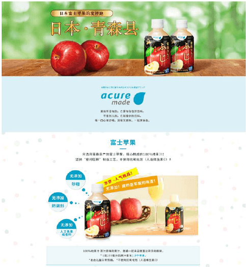 「青森りんごシリーズ」は訪日外国人のアキュアの自販機利用において、果汁飲料カテゴリー第1位の売上を記録する人気商品となっています(2017年4-12月累計)。また、「ふじ」品種は青森県内で生産量が最も多く、お客さまにご好評をいただいていることから、中国・マレーシア両国の大手オンラインモールにて販売を開始します。「青森りんごシリーズ」以外のアキュアメイド各種商品も順次展開していく予定です。
