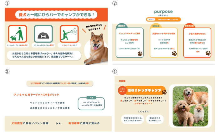 ※④がイベントの基になった案「出張!ドッグキャンプ」。