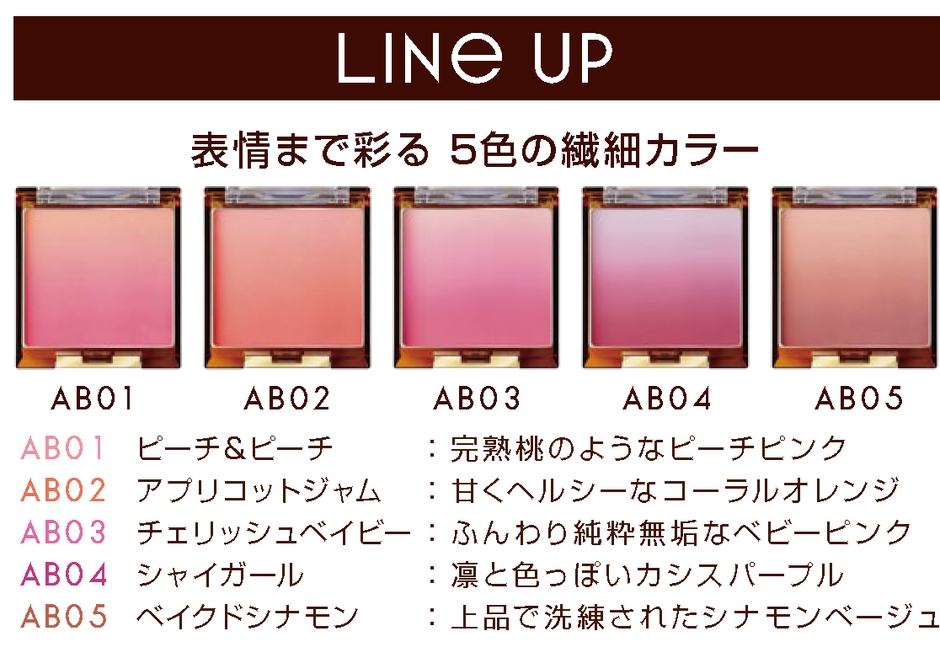 サナ エクセル オーラティック ブラッシュ AB01~AB05 各1,800円(税抜)