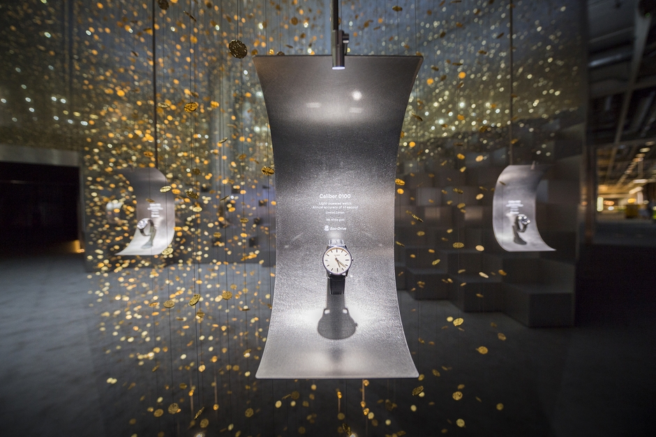 シチズンウオッチグループの「Time Theatre(タイムシアター)」ブースには、2019年のテーマである「We Explore Time」を表現したインスタレーション空間が広がっています。