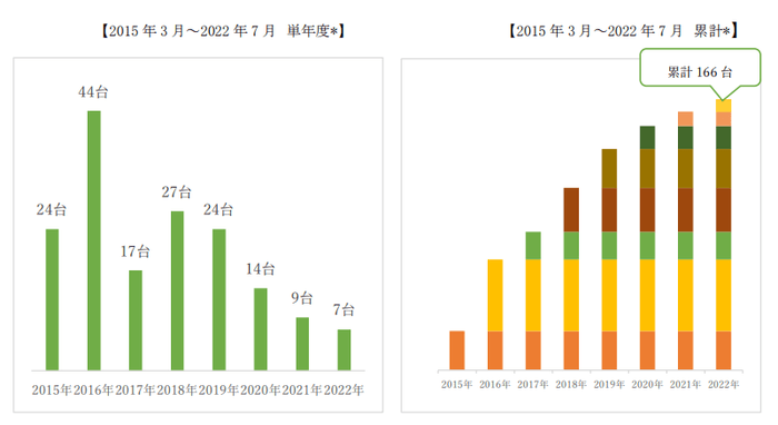 企業向け卓上型ドライブシミュレータの販売実績(2015年3月~2022年7月)