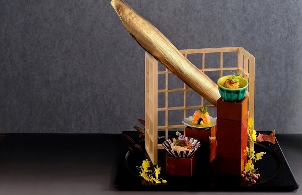 台湾の漆職人が作った田楽箱に入れて提供します。台湾中部では、日本統治時代から漆樹が栽培されてきました。特に台中・豊原地区では、漆工芸が盛んで「台湾漆器産業の故郷」ともいわれています(注2)。食材と調理法だけでなく、器の意匠からも、台湾・日本両国の文化の融合を感じられる一品です。