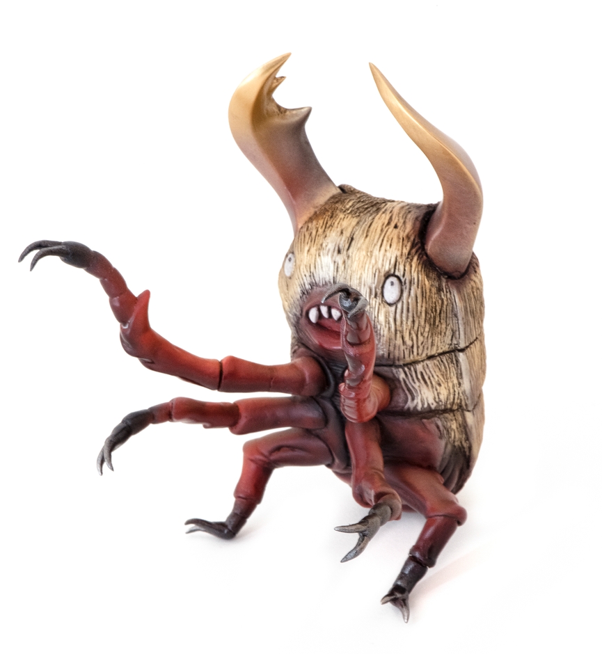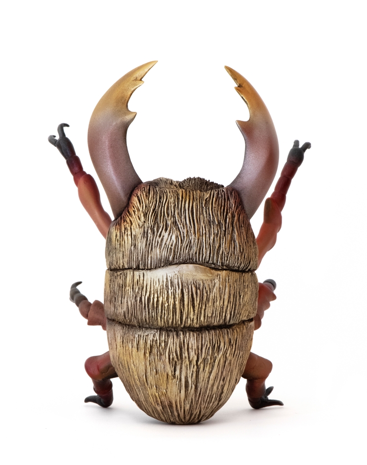 獣虫シリーズは、ソフトビニールフィギュアの新しい可能性を追求したフィギュアです。製造は世界中にファンを持つソフトビニール制作工房「シカルナ・工房」が担当しています。昔ながらのスラッシュ成形を用い、一つひとつ手作業で塗装しています。通常、スラッシュ成形は軟らかい素材を使うので、昆虫のような手足が細い造形は不向きと言われています。今回の獣虫シリーズは、シカルナ・工房の造形技術により実現いたしました。