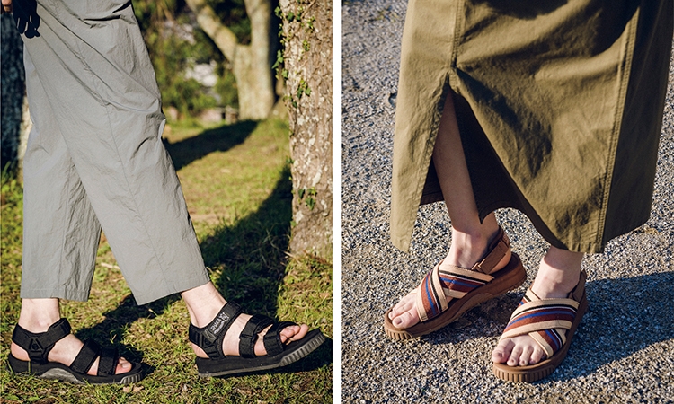 ブーム終焉で一度消滅したものの、フェスやアウトドアシーンでマニアに支持され続け2013年に復刻しました。当時のアーカイブを忠実に再現しつつ、ソールの強度やクッション性、履き心地はもちろん、デザイン面も現代風に進化して蘇り、夏のスタイルに欠かせない人気サンダルブランドの一つとなっています。