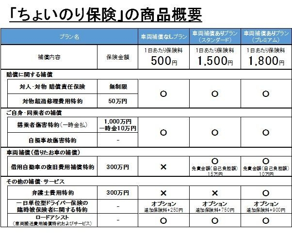 2.「ちょいのり保険」の商品概要