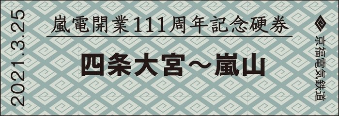 1.「嵐電開業111周年記念硬券」(2種)発売