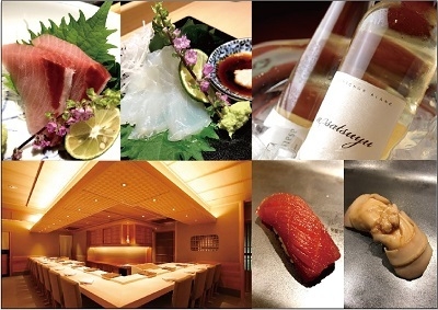 KENZO ESTATE(ケンゾー エステイト)の『あさつゆ asatsuyu(※)』に合わせて、江戸前鮨の伝統を受け継いだ鮨職人が、洋食では味わえない和の繊細な技術で“いかに美味しくワインとの相乗効果を楽しめるか”を追究したコースです。