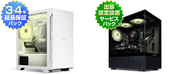 パソコンをより身近に、長く使って頂くために、通常1年間無償保証を最大4年間にできる、「延長保証パックモデル」や、専門のスタッフがお伺いして開梱、設定・設置を代行する「出張設定設置サービスパックモデル」もご用意しています。