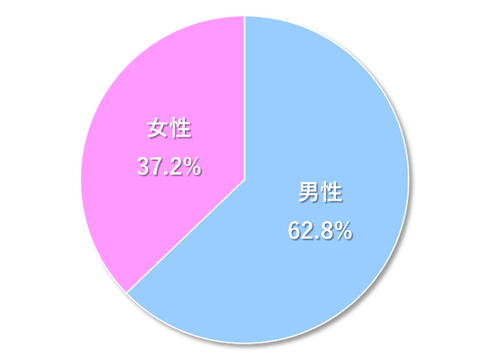 >男女別の受診者層は男性が62.8%、女性が37.2%となっている(図1)