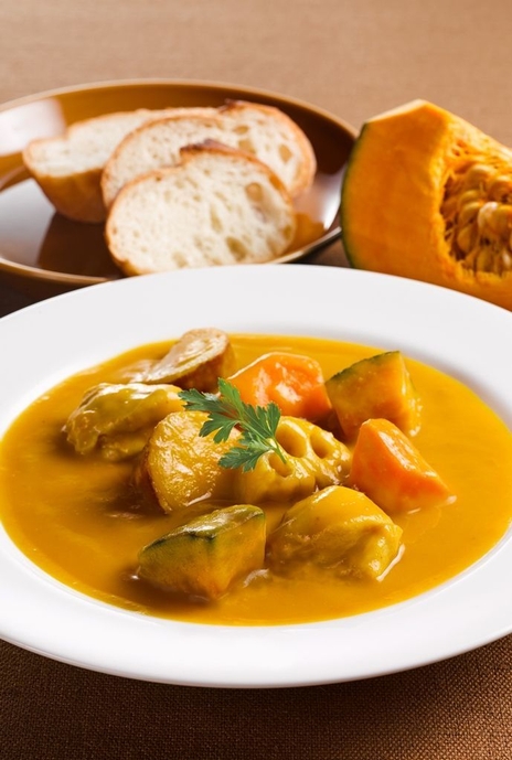 かぼちゃ、さつまいも、れんこん、にんじん、鶏肉の食べ応えのある具材感。