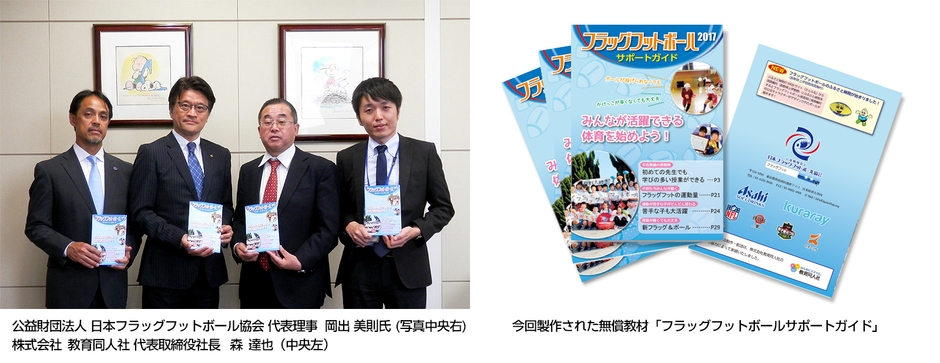 その新部門の事業として、小学校体育で普及が進む「フラッグフットボール」の小学校教員用サポートガイドを公益財団法人 日本フラッグフットボール協会(所在地:東京都世田谷区、代表理事:岡出 美則)と提携し、共同で編集、日本全国1,500校を超える小学校へ「フラッグフットボールサポートガイド2017」の寄贈に協力いたしました。