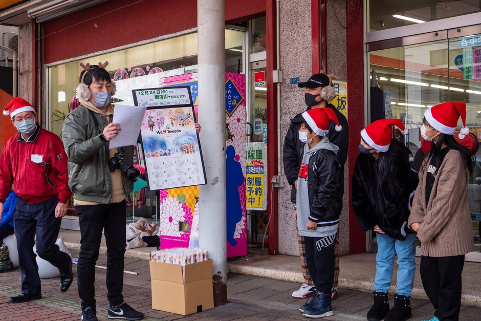 2021年12月24日(金)、青森県十和田市の商店街にある相坂屋前で、市民団体インバウンド十和田(米内山 和正会長)が制作した2022年度版「We Love Towada」オリジナルカレンダーの贈呈式が行われました。
