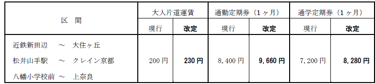 京都府八幡市・京田辺市域(一部大阪府枚方市)の特別初乗運賃の改定について