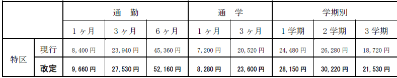 ・改定普通旅客運賃に応じた定期旅客運賃に改定します。
