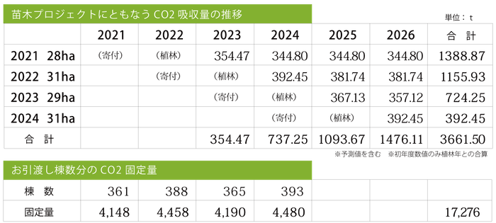 「花まるクレジットポイント」とは、「e-kenet Visaカード」のご利用に応じて進呈されるポイントです(一口1,000円単位で交換)。今回の寄付額には、2024年11月末までに「花まるポイント」から「苗木を還そうプロジェクト」へのご寄付を賞品として交換していただきました20口分が含まれます。