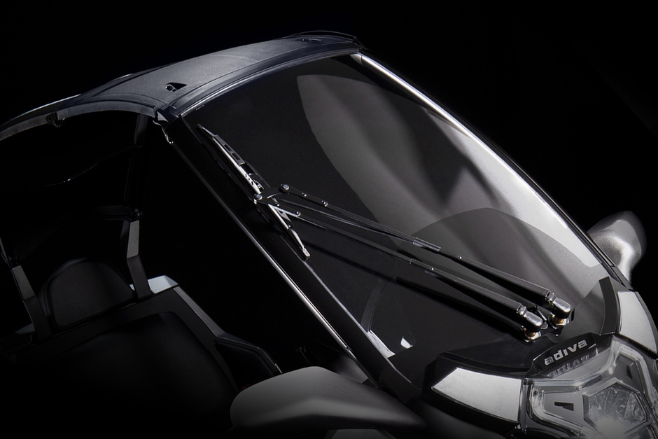 UVカット加工の施されたフロントスクリーンが、雨や冷たい走行風からライダーを保護。2段階調整式ワイパーが、雨天でも良好な視界を確保します。