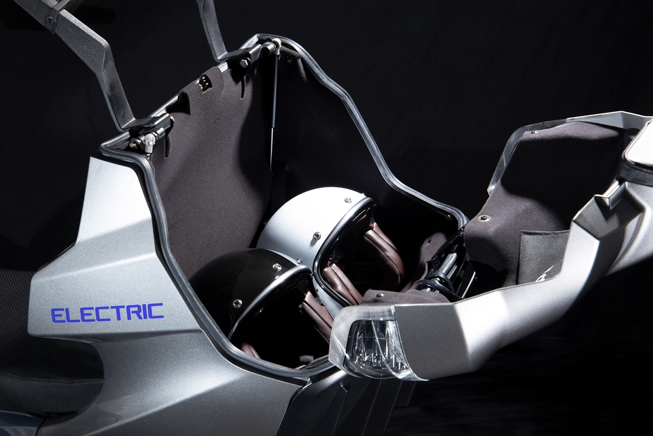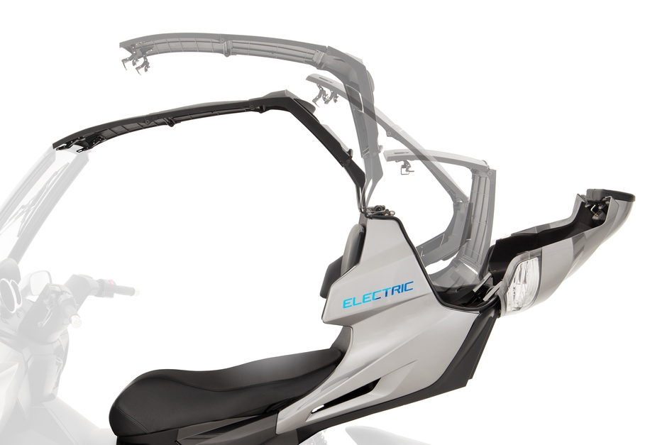 既発売の大型電動バイク「VX-1」の車体に、フロントスクリーン、開閉式ルーフ、リアトランクを含む独自のエクステリアを付与した、次世代のアーバンミューターです。ボディカラーをはじめ車体各部の仕様をオーナーの好みに応じてオーダーメイド形式でお選びいただける、オフィシャルコンプリートモデルです。